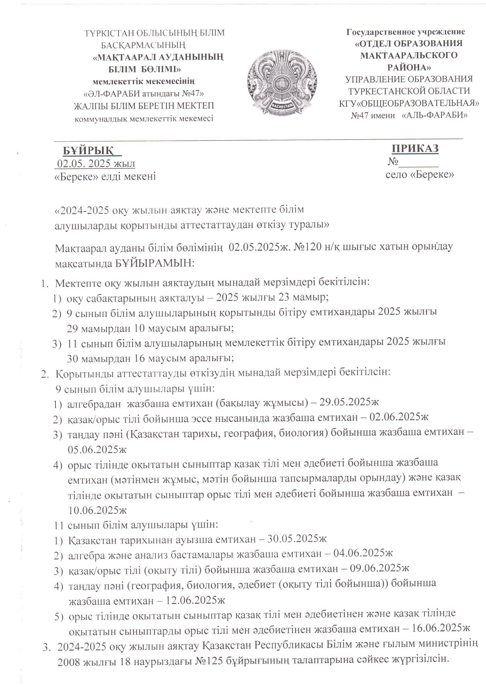 Емтихан бұйрықтары » Әл Фараби ЖОМ