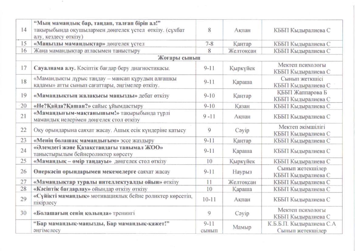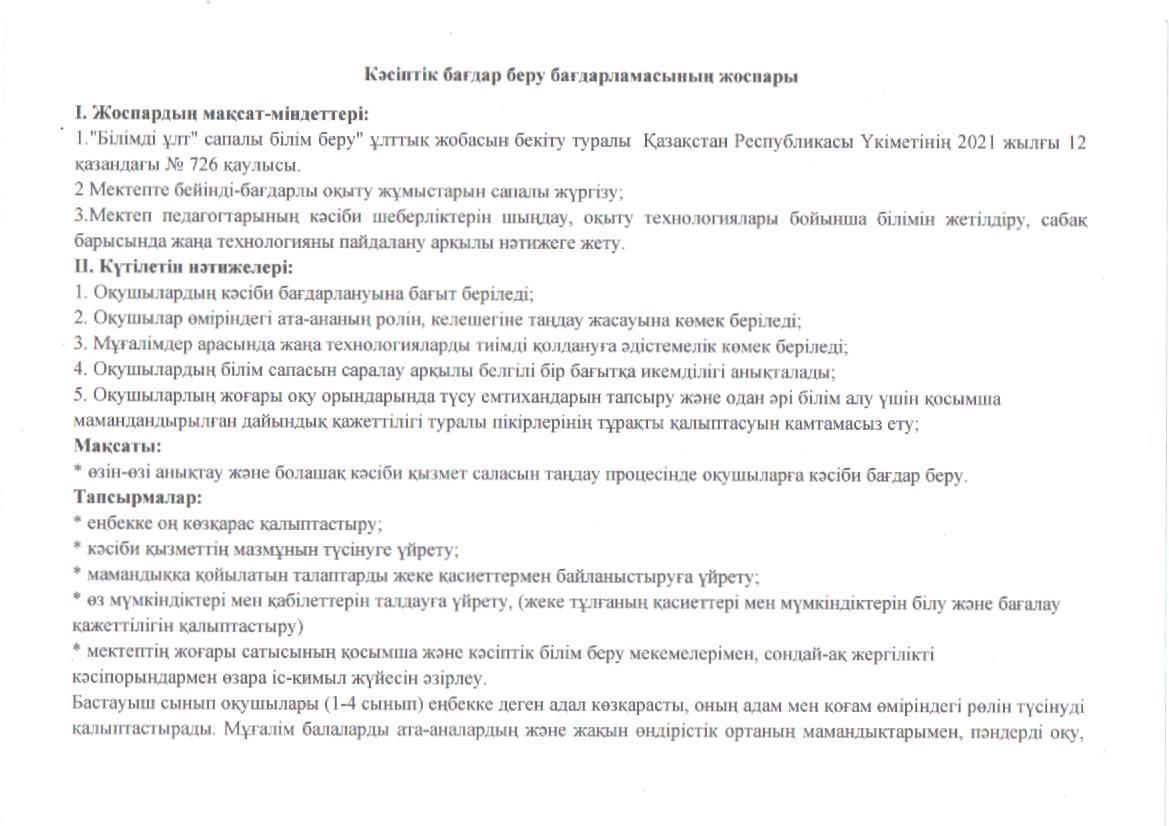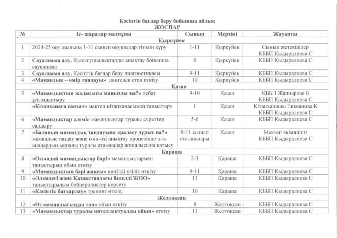 КӘСІБИ БАҒДАР БЕРУ ПЕДАГОГІ ЖҰМЫС ЖОСПАРЫ 2024-2025 ОҚУ ЖЫЛЫ » Әл Фараби ЖОМ