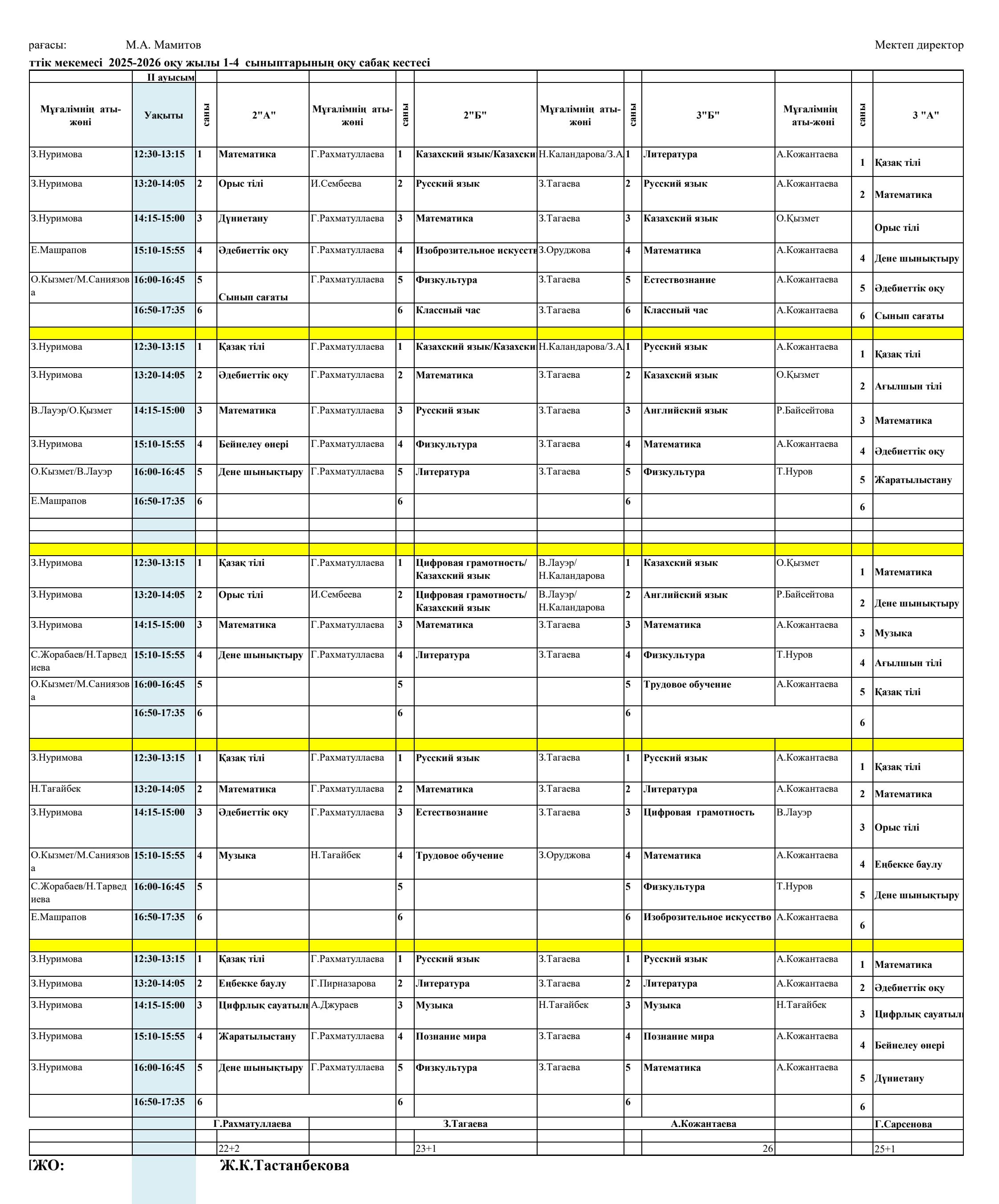 » » » 2025-2026 сабақ кестесі 1-4 сыныптар