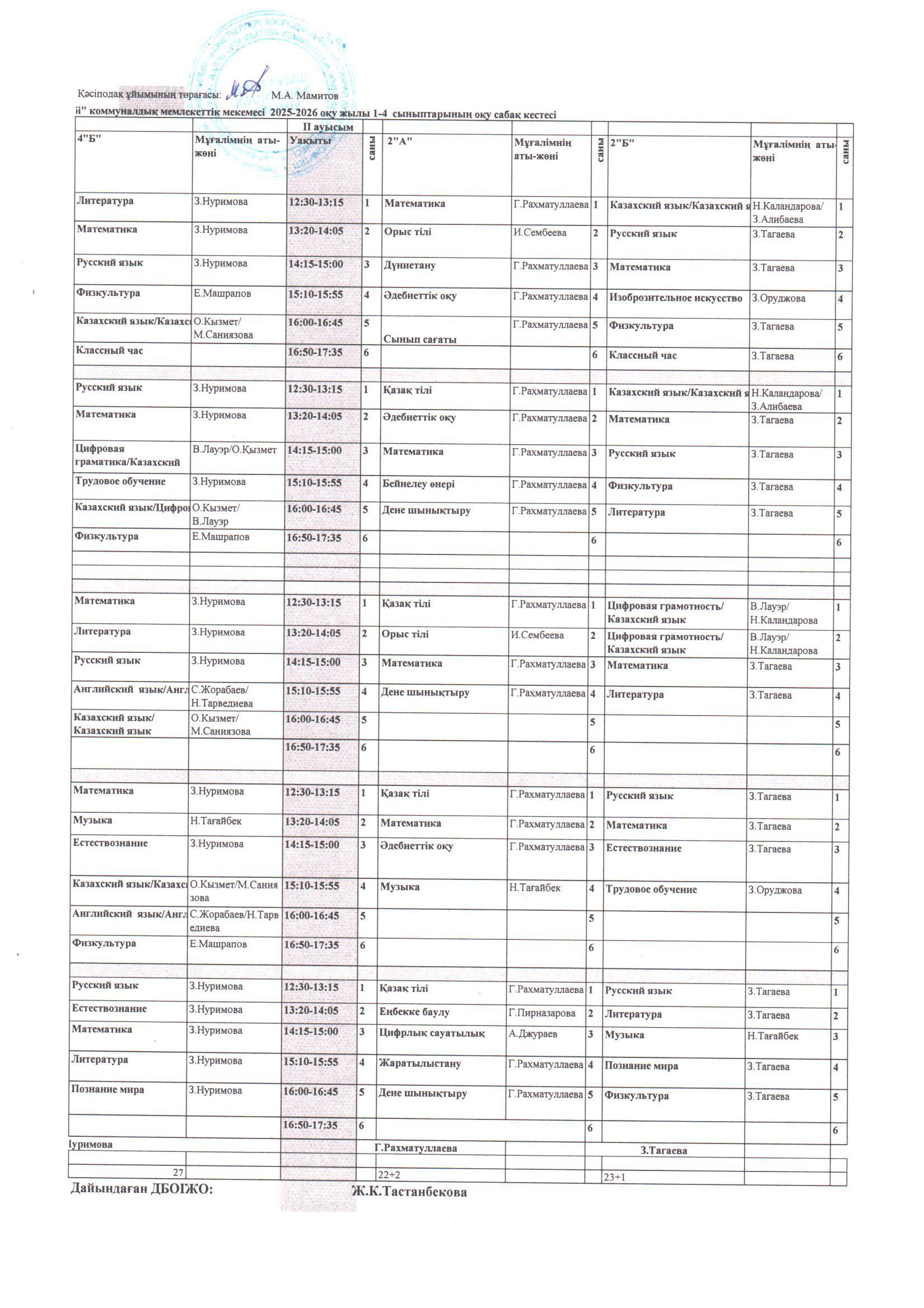 28 ноябрь 2025 Сабақ кесте